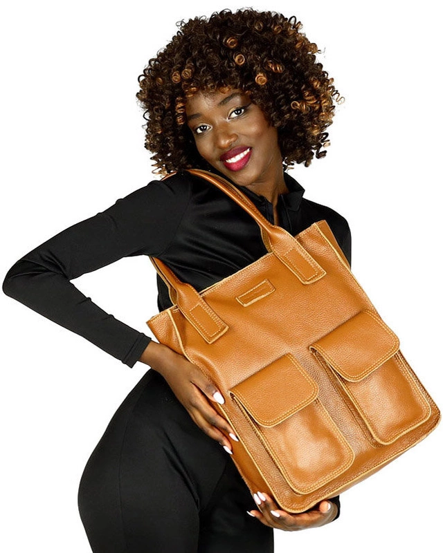 Torebka shopper brąz camel wykonana z naturalnej skóry dollaro. Skóra dollaro jest miękka i mięsista, a cechą, którą ją wyróżnia jest delikatnie “groszkowa” faktura. Torby damskie z tego materiału są bardzo wytrzymałe na obciążenia i zarysowania, świetnie sprawdzają się więc w codziennym, intensywnym użytkowaniu. Prosty i minimalistyczny fason, w oprawie z solidnej naturalnej skóry, zapewnia komfort użytkowania na najwyższym poziomie. Naturalna skóra to nie tylko bardzo wytrzymały surowiec, ale również doskonale zachowujący swoją formę przez lata.