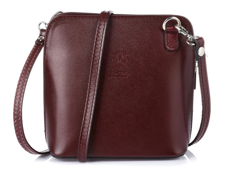 Burgundowa Vera Pelle Mała Torebka skórzana damska listonoszka K03