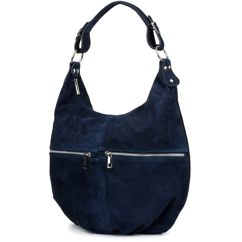 Opinie o Granatowa Vera Pelle Zamszowa Torebka A4 skórzany worek K51