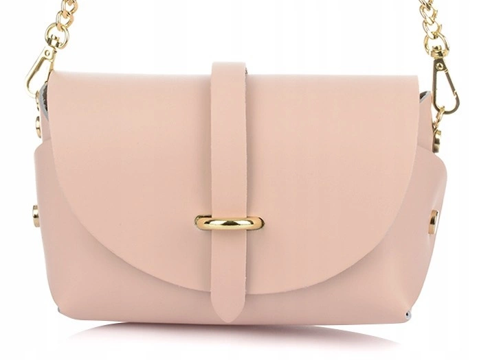 Opinie o Włoska torebka Skórzana wizytowa na Łańcuszku pudrowy róż P45