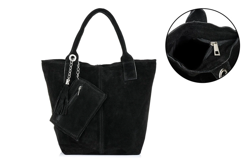 Opinie o Włoska Torebka Skórzana Zamszowa A4 Shopperka czarnym T49