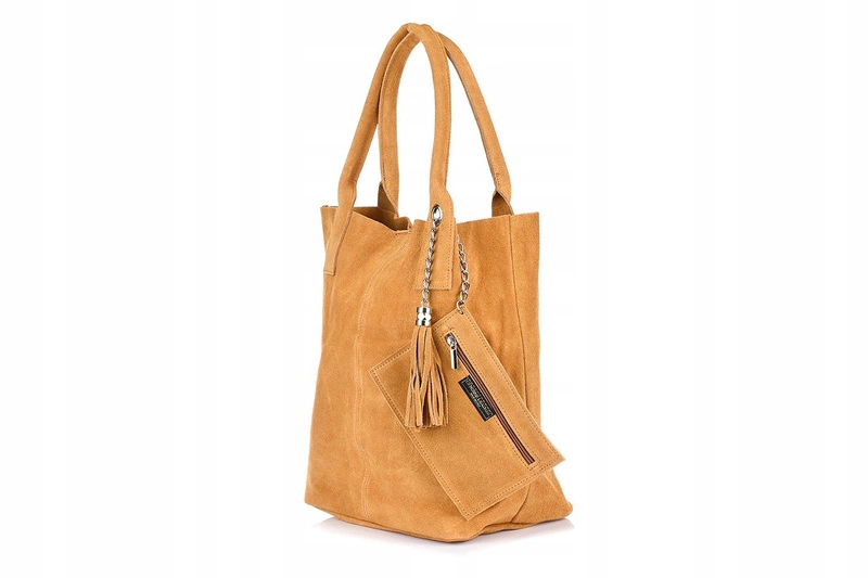 Opinie o Włoska Torebka Skórzana Zamszowa A4 Shopperka camelowa T49