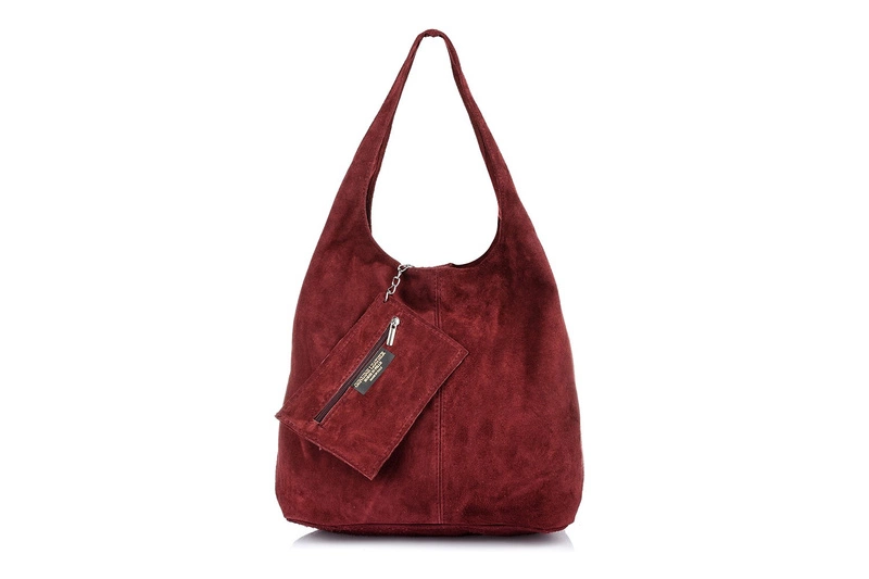 Włoska torebka zamszowa skórzana w bordowym kolorze.