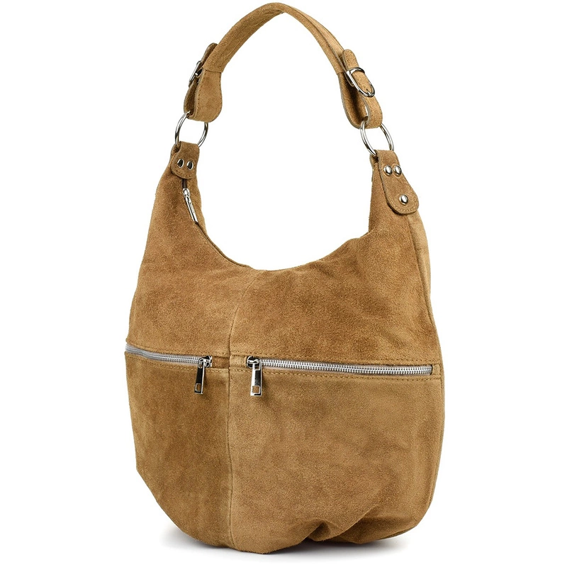 Włoska torebka skórzana w fantastycznym, brązowym, jesiennym kolorze. Wykonana jest starannie z zamszu naturalnego.