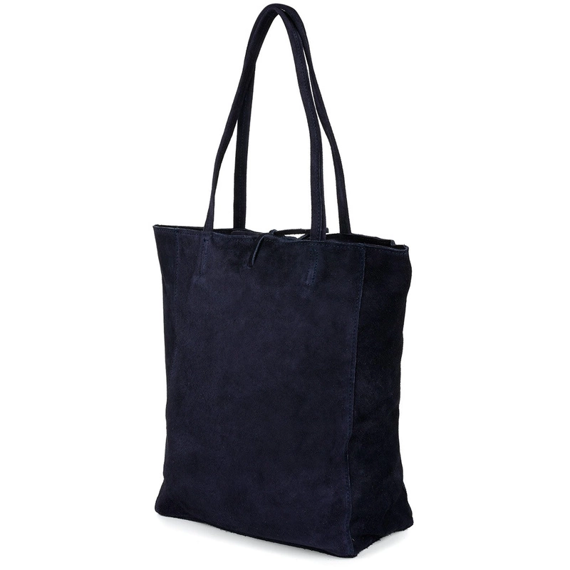 Granatowa Damska Włoska Skórzana Torebka Worek A4 Troczek W18