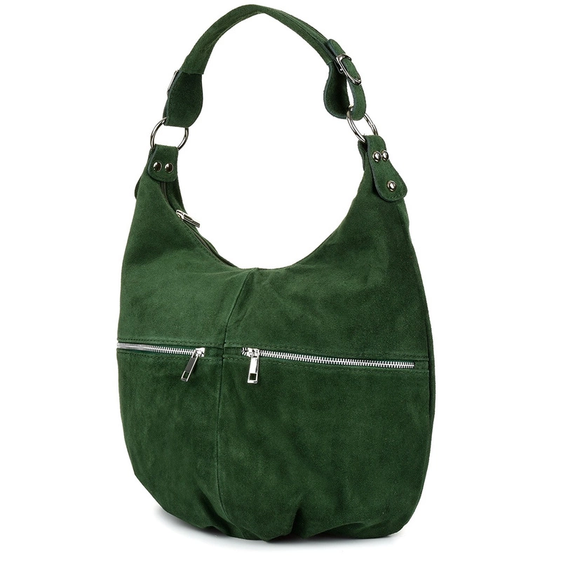 Opinie o Vera Pelle torebka skórzana zamszowa duża A4 ciemnozielona K51