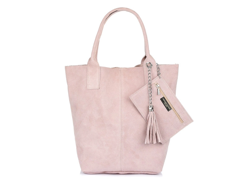 Opinie o Torebka skórzana zamszowa WOREK duża A4 Z SASZETKĄ jasnoróżowa L82