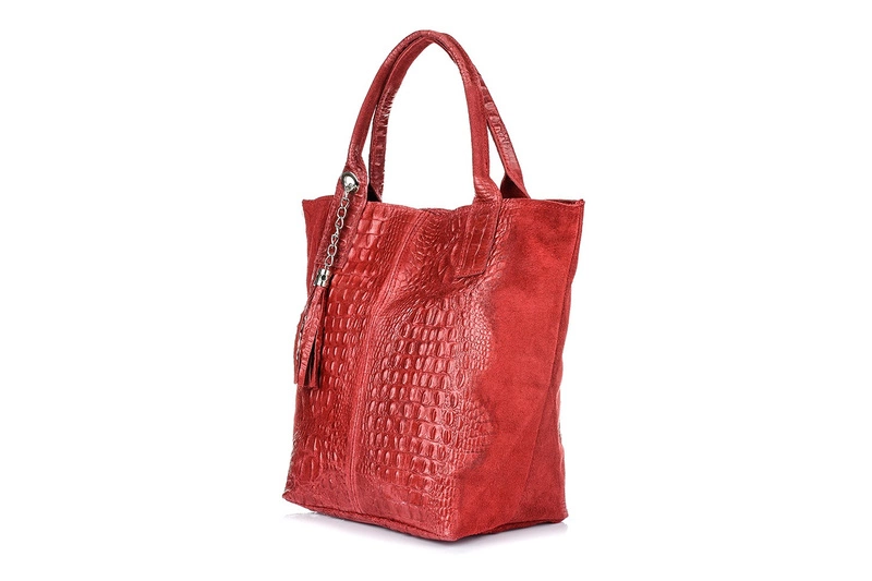 Opinie o Czerwona torebka Worek Skórzana A4 krokodyl z Saszetką czerwona L94