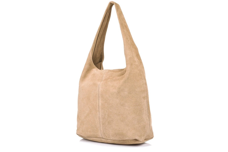 Duża, zamszowa, minimalistyczna, kobieca torebka, wykonana we Włoszech z włoskiej, miękkiej skóry naturalnej