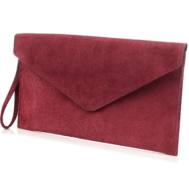 Elegancka torebka wieczorowa, kopertówka, wykonana we Włoszech, z włoskiego zamszu naturalnego, w pięknym, purpurowym kolorze