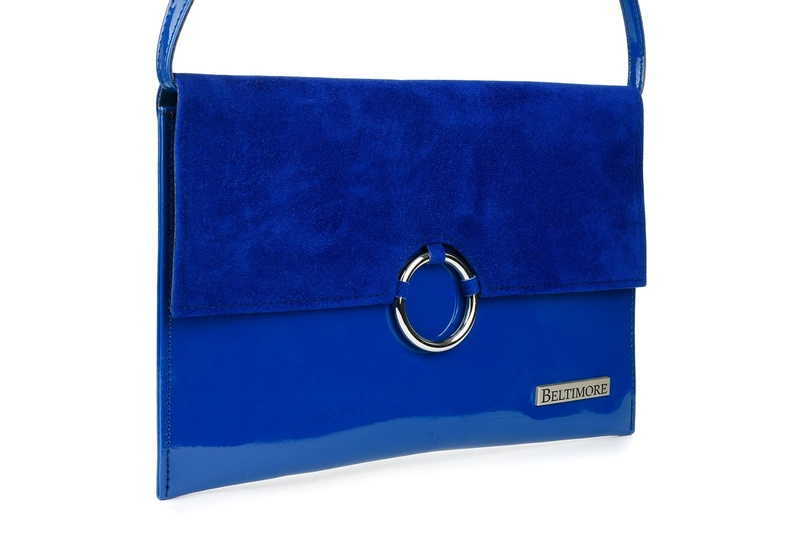 Niebieska oryginalna damska torebka kopertówka na pasku usztywniana W63