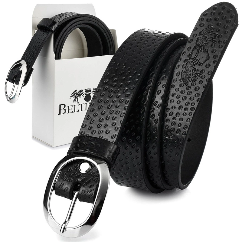 Beltimore skórzany damski pasek do spodni 3 cm antyalergiczny czarny U55