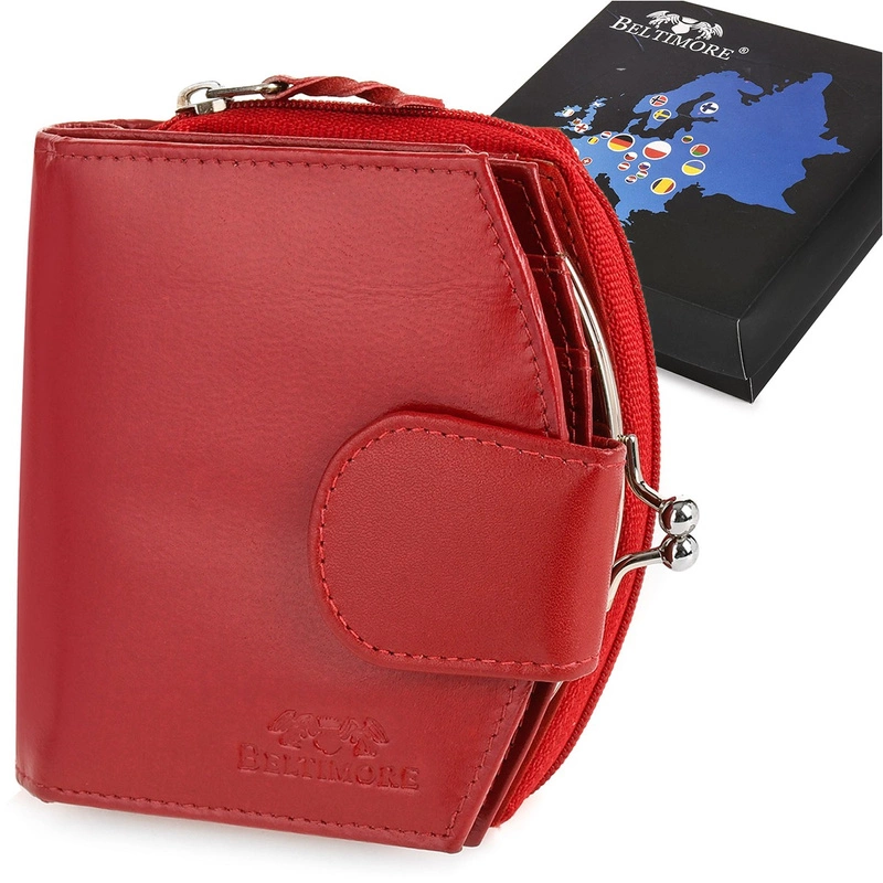 Portfel damski portmonetka skórzany czerwony RFiD BELTIMORE L53
