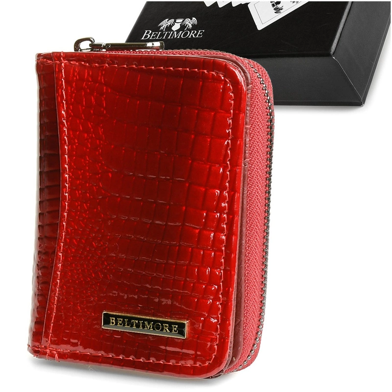 Czerwony mały portfel damski skórzany lakierowany Beltimore A05