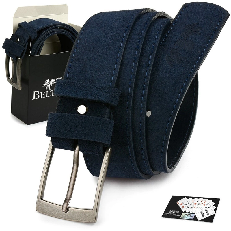 BELTIMORE granatowy męski pasek skórzany pudełko A87 : Kolory - granatowy, Rozmiar pasków - r.120-135 cm