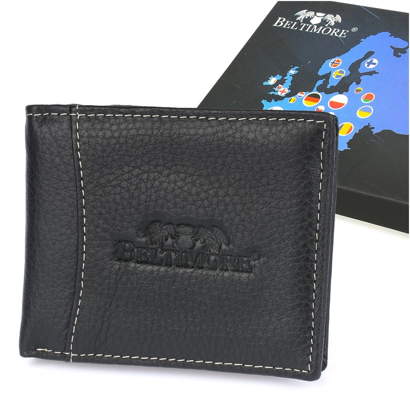 Elegancki męski portfel wykonany z wysokiej jakości skóry naturalnej vintage w brązowym kolorze, marki Beltimore z dodatkowym zabezpieczeniem RFiD.