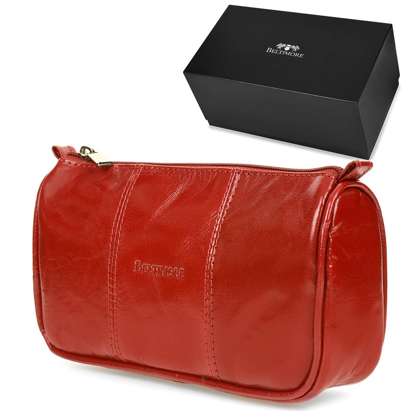 Beltimore Kosmetyczka Skórzana czerwona piórnik M79