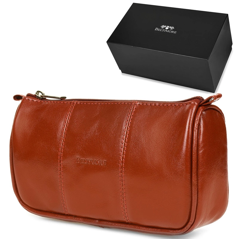 Beltimore Kosmetyczka Skórzana brązowa piórnik M79