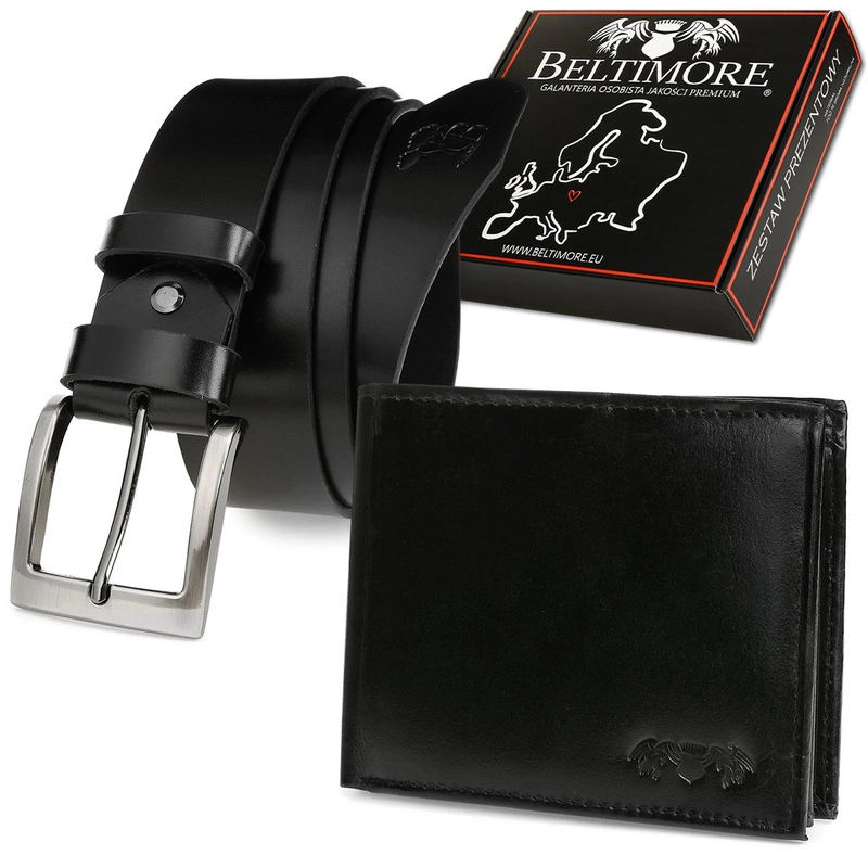 Ekskluzywny, wysokiej jakości, zestaw męski składający się ze skórzanego portfela i paska marki Beltimore®
