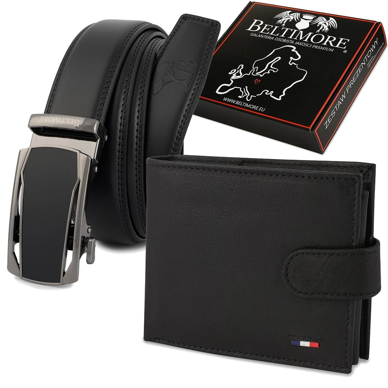 Ekskluzywny, wysokiej jakości, zestaw męski składający się ze skórzanego portfela i paska marki Beltimore?