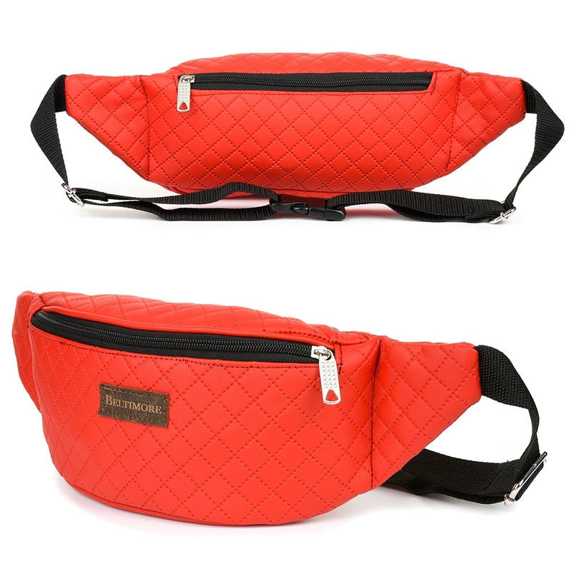 Elegancka i funkcjonalna saszetka-"nerka" pikowana eko skóra w modnym fasonie lacostki, wyprodukowana w Europie, marki Beltimore.