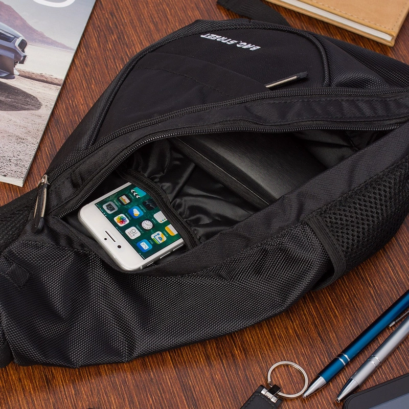 - Regulowana, szeroka szelka od wewnętrznej strony również posiada siateczkę przeciw poceniu się oraz piankę, która zmniejsza odczuwalność noszonego ciężaru; na zewnętrznej stronie szelki naszyto elastyczną kieszonkę na telefon
