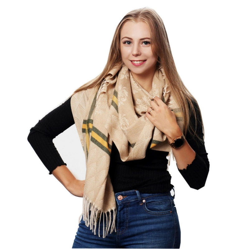 Beżowy Bawełniany duży szalik damski ciepły szal elegancki D09