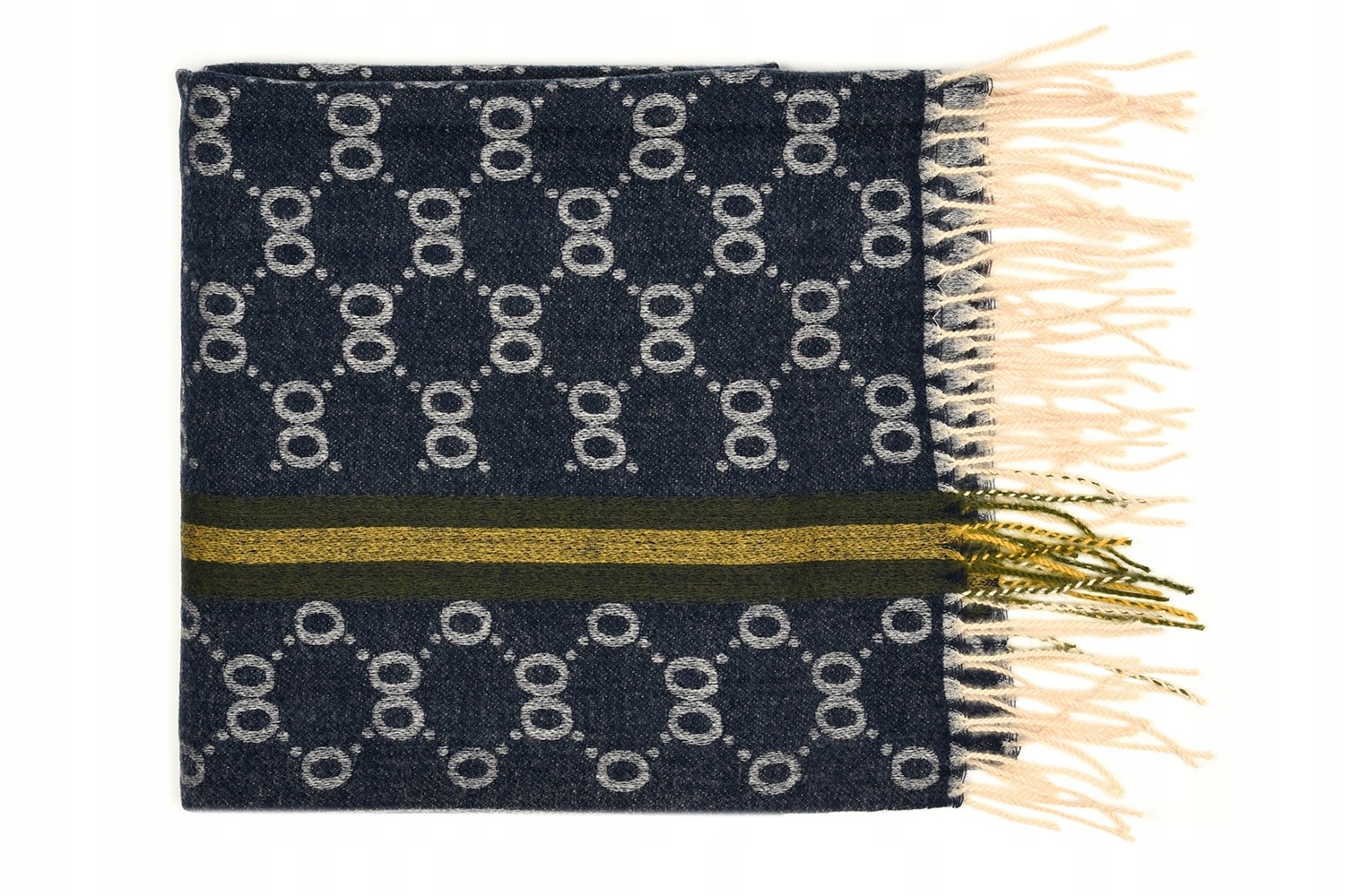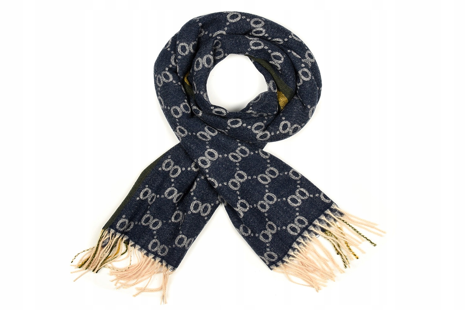 Szal jest bardzo przyjemny w dotyku jak kaszmirowy, wykończony frędzlami.