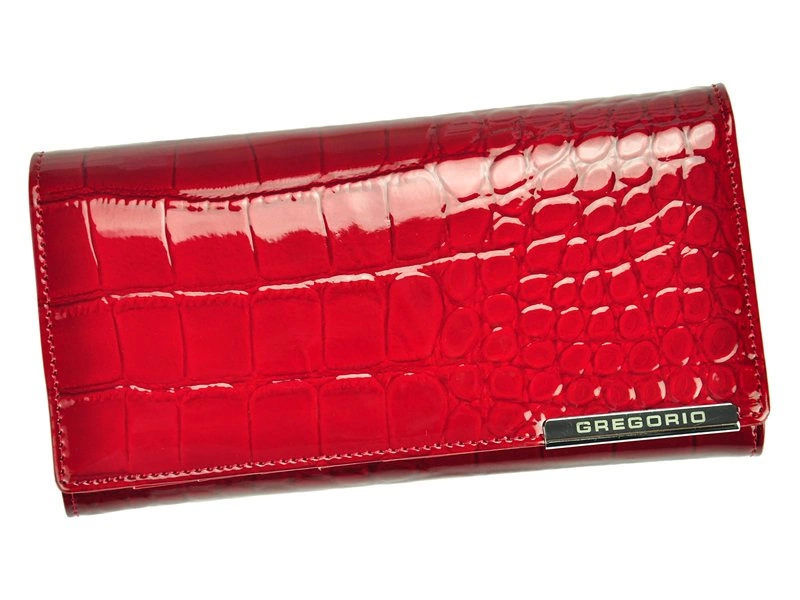 Klasyczny portfel damski, wykonany z najwyższej jakości skóry naturalnej, która została w całości pokryta lakierem - prezentuje się to niezwykle luksusowo i szykownie. Oryginalny design portfela o aligatorowym tłoczeniu, czyni go idealnym dla eleganckich, stylowych kobiet.