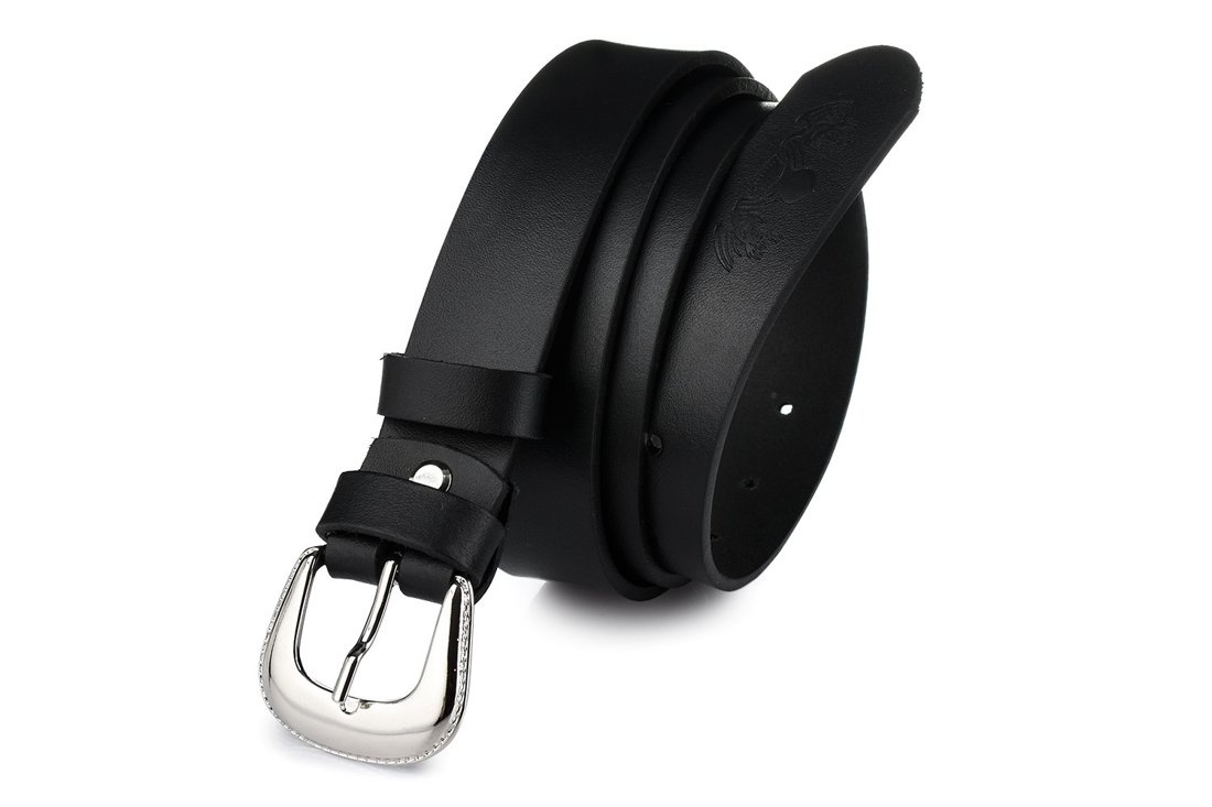 Opinie o Beltimore skórzany damski pasek do spodni 3 cm czarny U56 : Kolory - czarny, Rozmiar pasków - r.150-165 cm