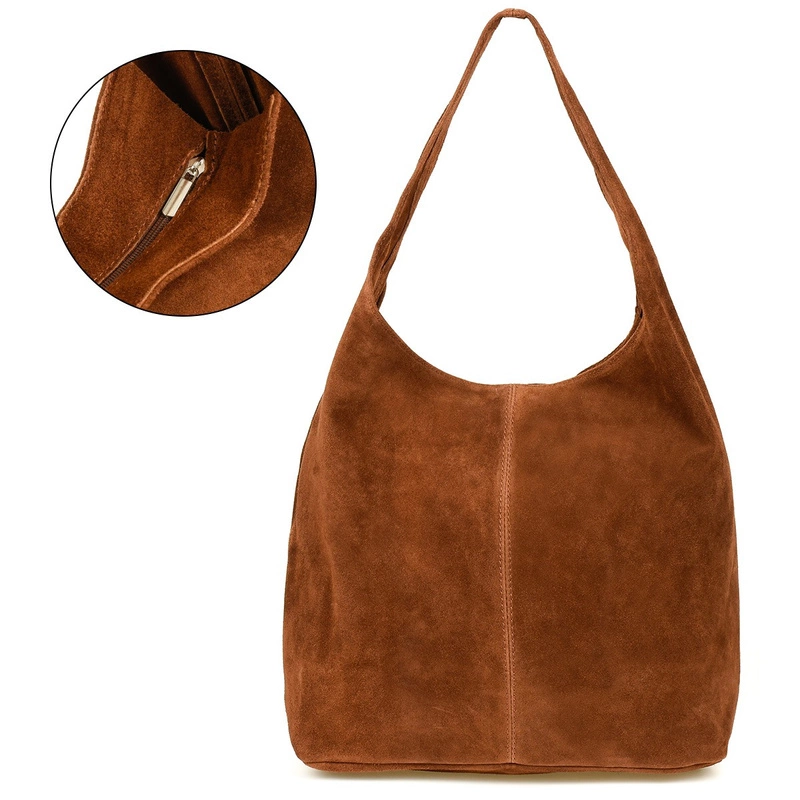Włoska Torebka worek Skórzana zamsz Naturalny U35