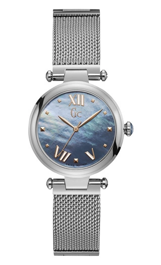 Zegarek GC Damski Y31001L7 (32MM). Typ mechanizmu: Kwarcowy. Wyświetlacz: Analogowy. Materiał koperty: Stal Szlachetna. Kolor koperty: Srebrny. Materiał bransoletki: Stalowy. Kolor bransoletki: Srebrny. Kolor wskazówek: Niebieski. Typ szkiełka: Mineralne. Rodzaj zapięcia: Wciskane. Średnica tarczy: 32MM. Wodoszczelność: 5ATM