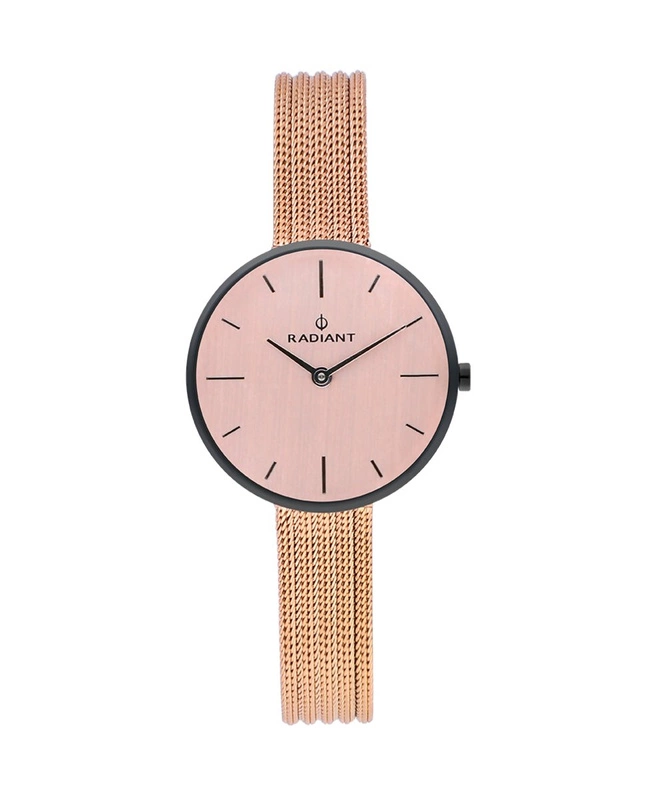 Zegarek RADIANT Damski RA522604 (32MM). Typ mechanizmu: Kwarcowy. Wyświetlacz: Analogowy. Materiał koperty: Metalowe. Kolor koperty: Czarny. Materiał bransoletki: Stal Szlachetna. Kolor bransoletki: Różowy. Kolor wskazówek: Różowy. Typ szkiełka: Mineralne. Rodzaj zapięcia: Wciskane. Średnica tarczy: 32MM. Wodoszczelność: 3 ATM