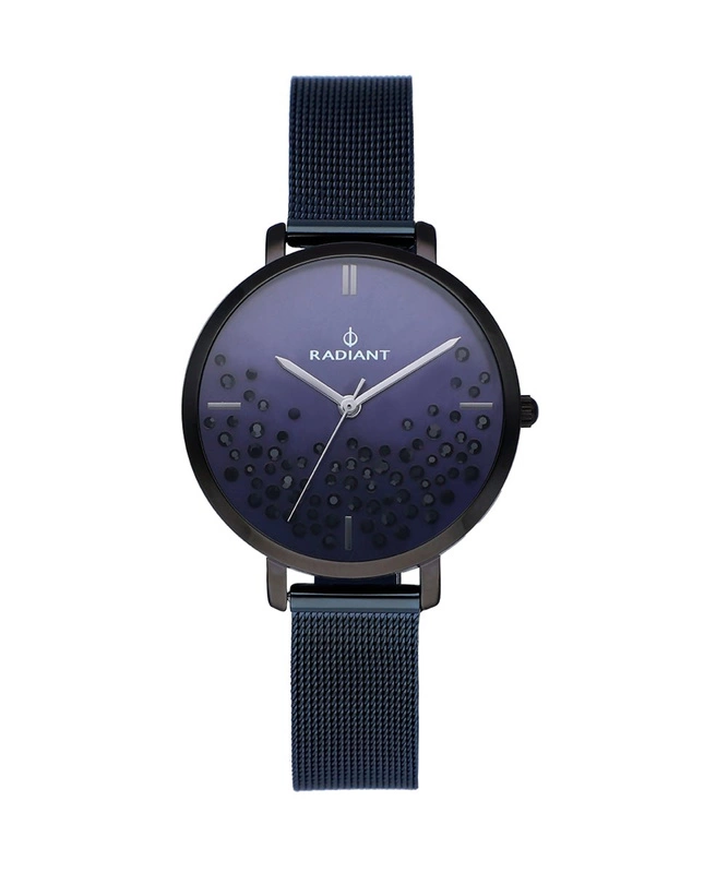 Zegarek RADIANT Damski RA525601 (36MM). Typ mechanizmu: Kwarcowy. Wyświetlacz: Analogowy. Materiał koperty: Metalowe. Kolor koperty: Czarny. Materiał bransoletki: Stal Szlachetna. Kolor bransoletki: Niebieski. Kolor wskazówek: Niebieski. Typ szkiełka: Mineralne. Rodzaj zapięcia: Wciskane. Średnica tarczy: 36MM. Wodoszczelność: 3 ATM
