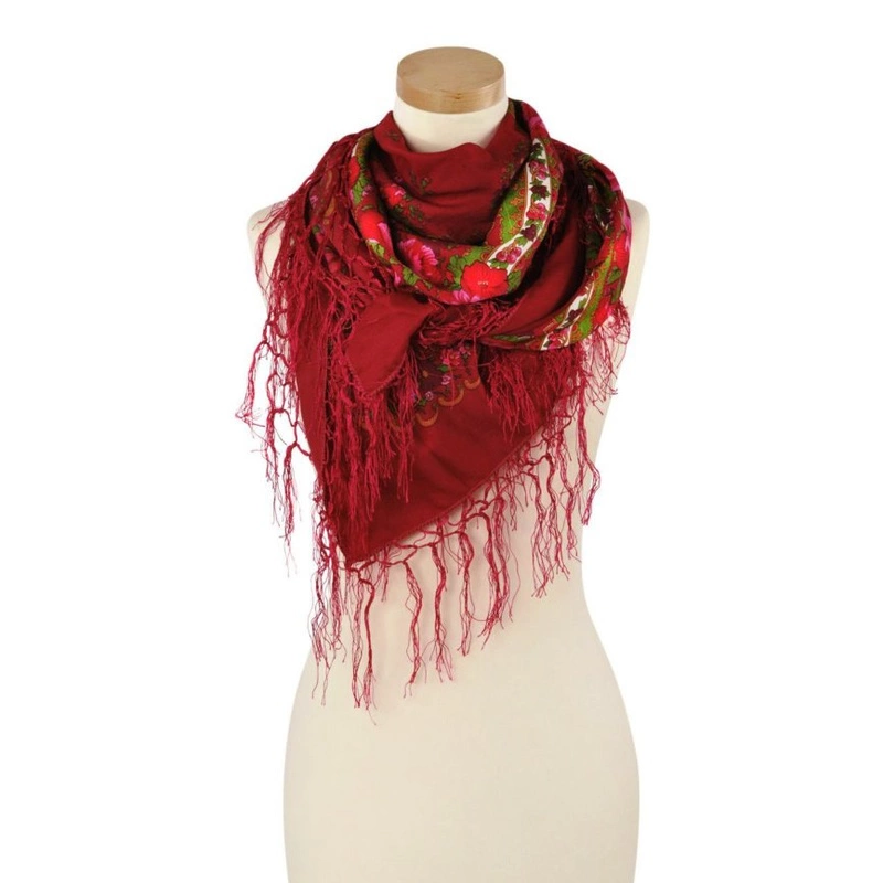 Frędzle są długie i delikatne oraz lekko połyskliwe, co dodaje chuście lekkości.