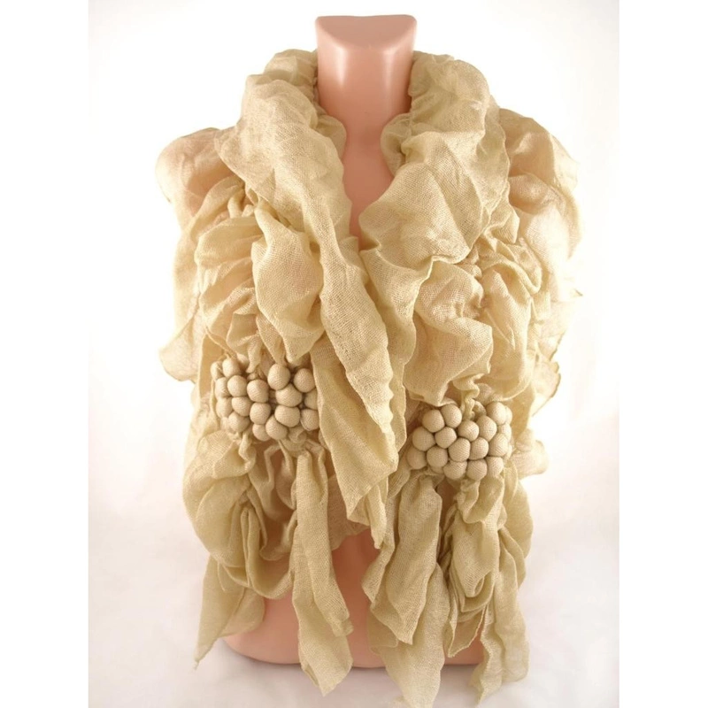 Ciekawy szal ozdobiony kuleczkami układającymi się w kiści winogron.