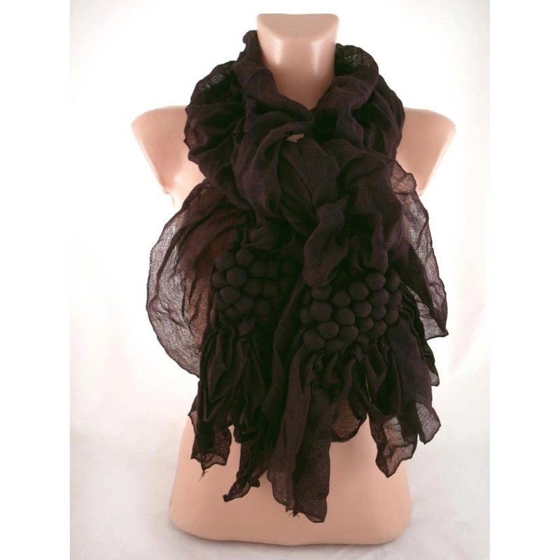 Ciekawy szal ozdobiony kuleczkami układającymi się w kiści winogron.