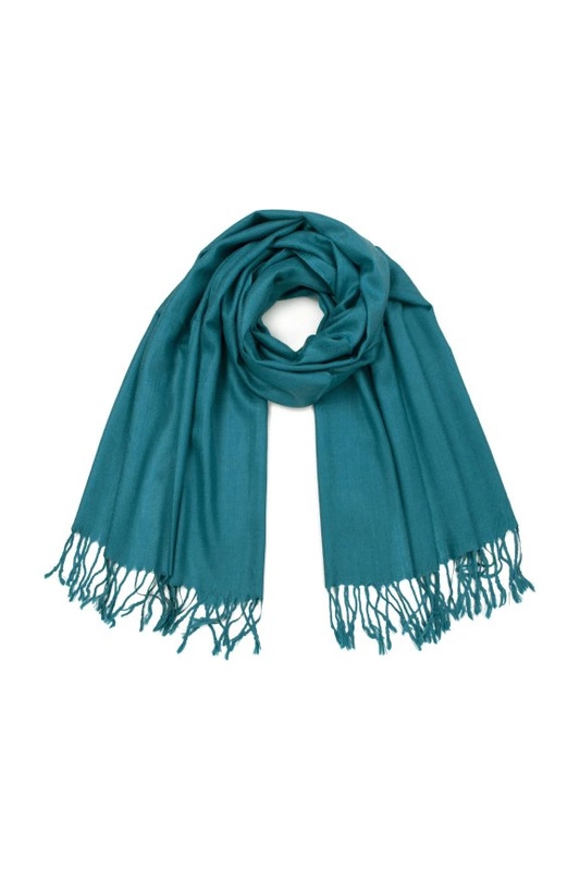 Wykończony frędzlami. Materiał miękki i przyjemny w dotyku.