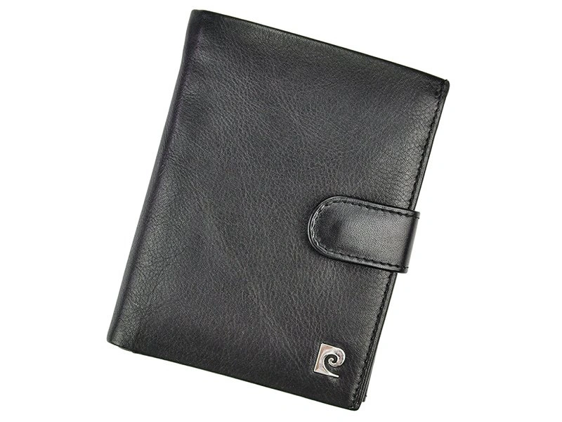 Pionowy układ, który pomieści nawet samochodowy dowód rejestracyjny. Wykonany z najlepszej jakości skóry naturalnej, miękkiej w dotyku. Na fakturze portfela, umieszczone zostało logo producenta Pierre Cardin w srebrnym okuciu. Zamykany na zatrzask, przez co użytkowanie będzie wygodne, a przechowywanie bezpieczne. Elegancki fason, który wpadnie w oko każdemu z Panów.