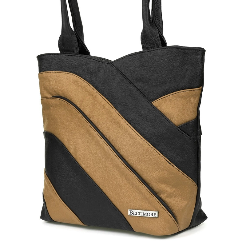Opinie o Czarno- beżowa Skórzana Damska Torba na Ramię Beltimore L38