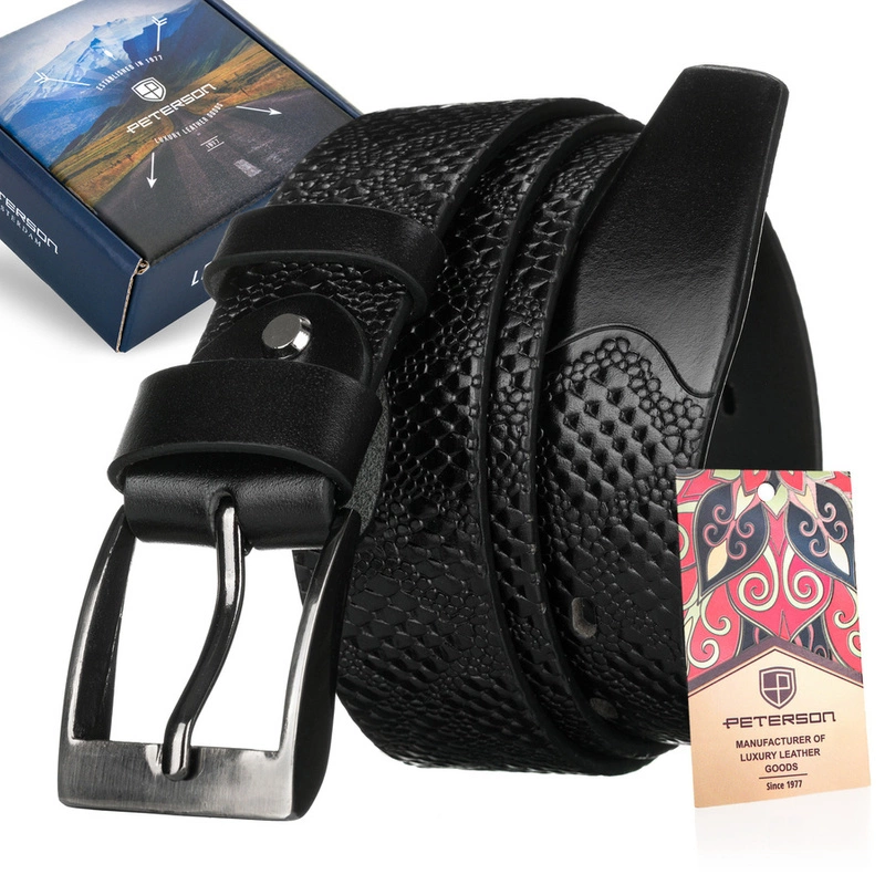 Pasek skórzany męski z tłoczeniem croco - Peterson
