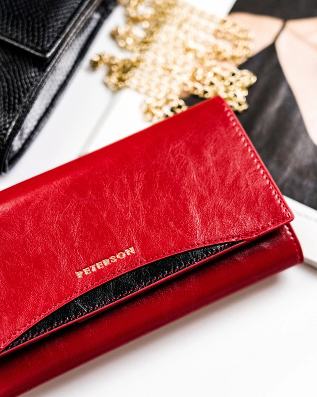 • Elegancki, czarno-czerwony portfel Peterson to doskonały wybór dla wymagających. Wyjątkowy design, pojemne wnętrze i funkcja RFID ochronią Twoje karty. Idealny dla kobiet ceniących luksus i funkcjonalność na co dzień!