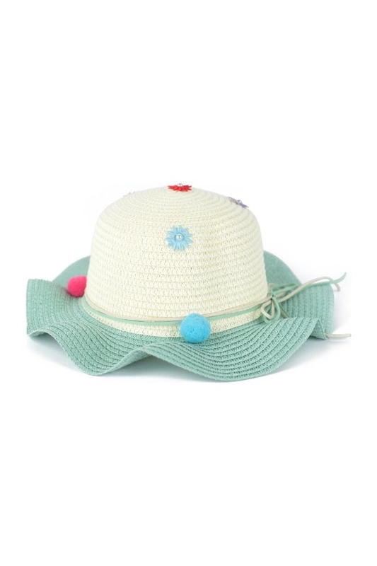 Dodatkowo ozdobiony kolorowymi kwiatuszkami i pomponikami.
