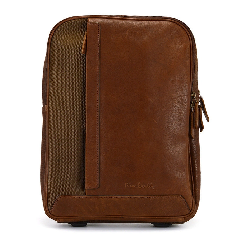 Praktyczny, a zarazem elegancki plecak będzie idealnym dodatkiem do codziennego użytkowania. Plecak uszyty jest z bardzo trwałych i odpornych na warunki atmosferyczne materiałów : skóry naturalnej oraz tkaniny kodury. Front plecaka ozdabia delikatne wytłoczone logo producenta Pierre Cardin.