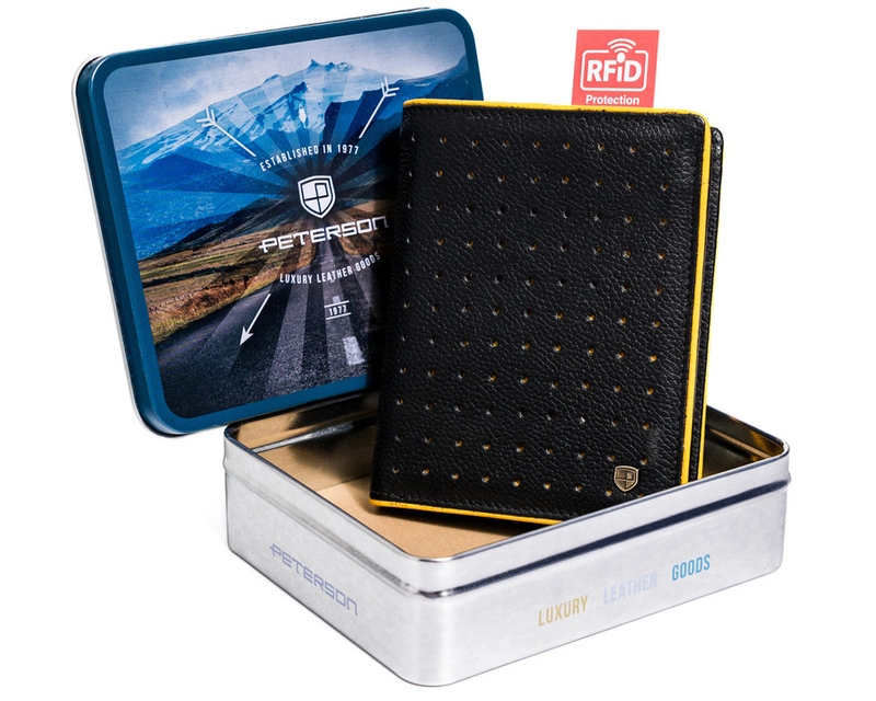 Skórzany portfel męski z kontrastowym obszyciem - Peterson