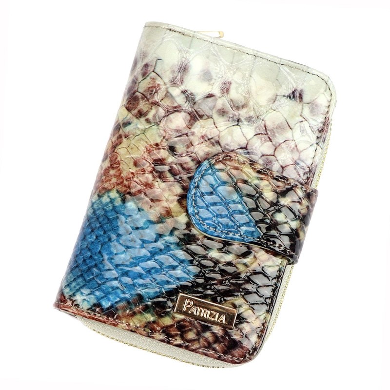 - Piękna damska portmonetka, od marki Patrizia. Wykończona estetycznym wzorem w typie skóry węża. Na fakturze widoczne jest logo marki w złotym okuciu. Zgrabna, zmieści się w każdej damskiej torebce. Zapraszamy do zakupów.