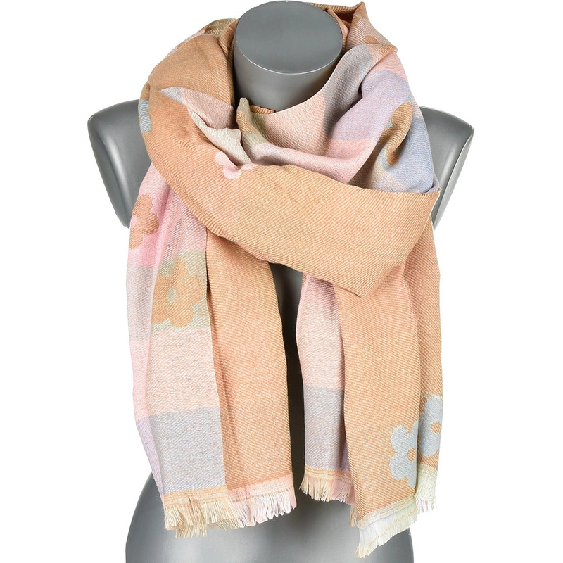 Modny, duży, przyjemny w dotyku szalik damski w modnym wzorze w kratę, zakończony frędzlami