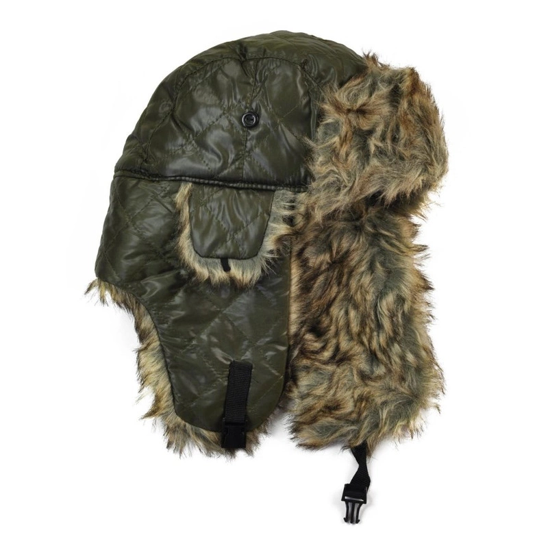 Ma dodatkową klapkę na ucho również podszytą futerkiem, którą można przypiąć do góry lub do dołu.