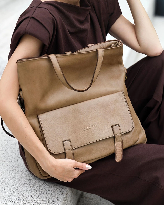 Torebka na co dzień, która zmienia się w miejski plecak skórzany to nowa propozycja z kolekcji Marco Mazzini SLOW BAG Runway. Zostanie doceniona przez Podróżniczki i Miłośniczki dwóch kółek. Żyjesz w ciągłym biegu? Ten torebko plecak dotrzyma Ci kroku. Multi-funkcjonalność w połączeniu z elegancką skóra naturalną sprawia, że będzie odpowiedni na każda okazję. Sprawdzi się zarówno w formie torebki do ręki, torby na ramię oraz plecaka - w zależności od tego, czego akurat potrzebujesz. Torebka plecak Marco Mazzini zostanie z Tobą na pewno dłużej niż jeden sezon. Stworzona w minimalistycznym i ponadczasowym stylu. Wykonana z naturalnej skóry najwyższej jakości, w stylu old look, skrojony wprost na potrzebny aktywnych kobiet. Dostęp do wnętrza torebki kryty zamkiem błyskawicznym. Wnętrze starannie wykończone podszewką. Oferuje do Twojej dyspozycji dwie kieszonki, w tym jedną krytą suwakiem. Swobodnie zmieścisz do niej wszystkie codzienne akcesoria, dokumenty w formacie A4 . Dodatkowe kieszonki znajdują się z przodu i z tyłu torebki.