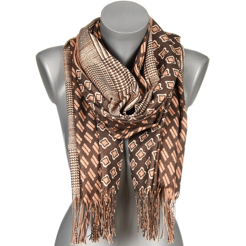 Brązowy Szalik Damski bawełniany dwustronny ze złotą nitką chusta AX-92